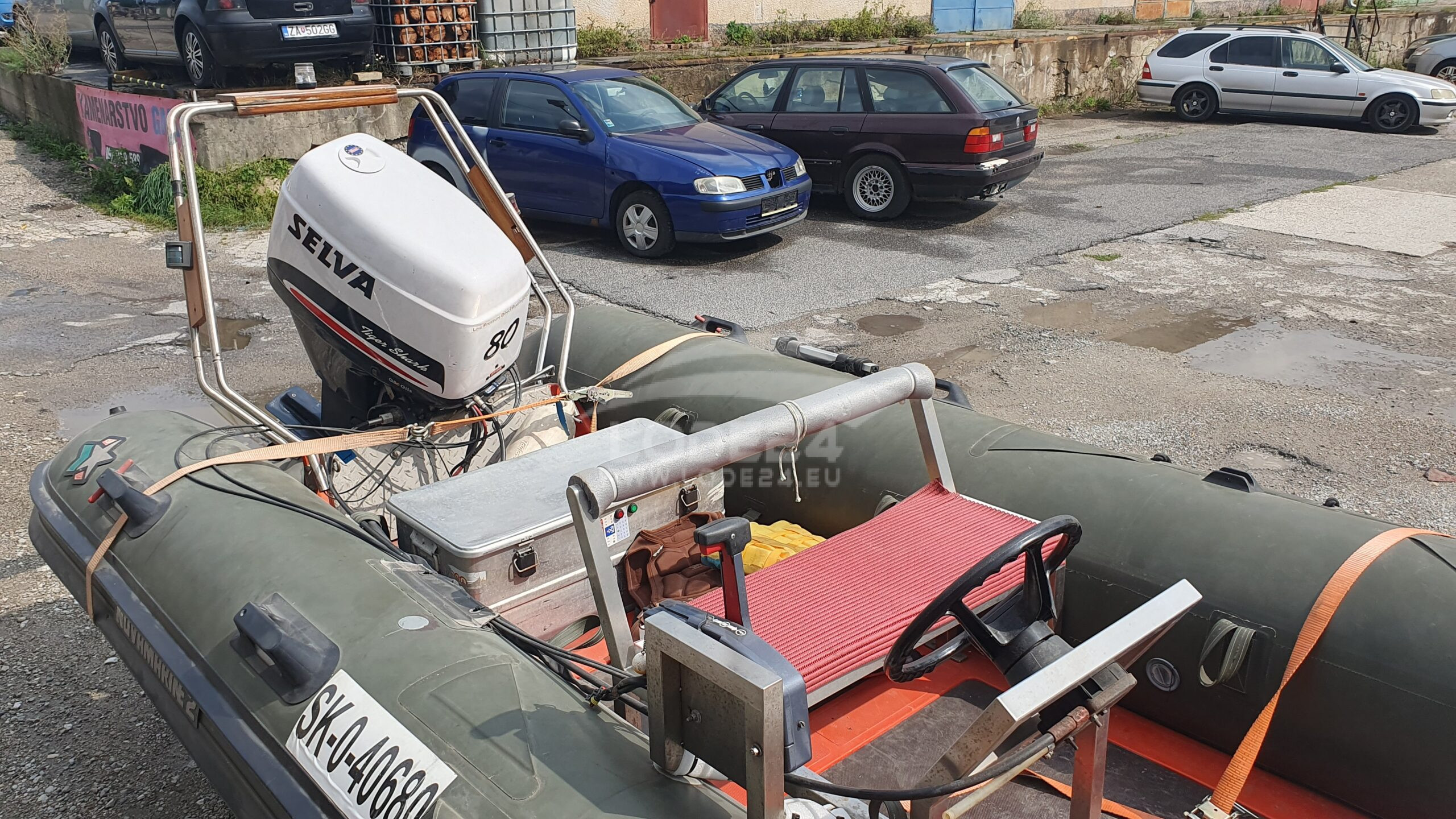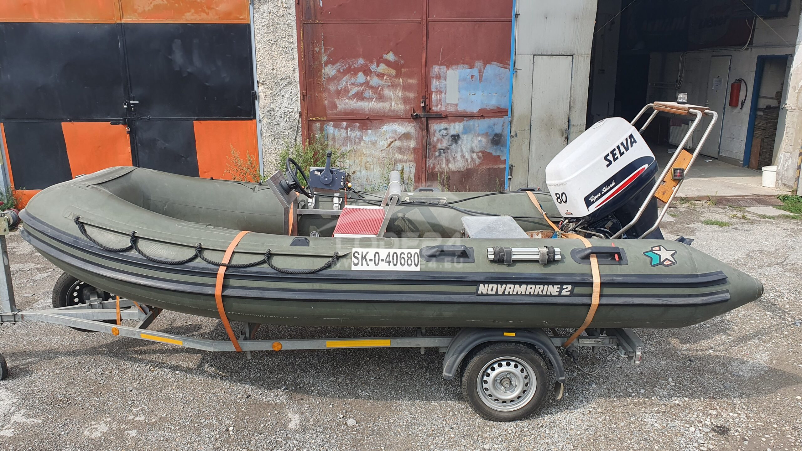 RIB Novamarine RH 460, Selva Tigershark 80, dvojtakt s priamym vstrekom, cca 250 motohodín + vozík. Vhodný aj na ťahanie lyžiara.